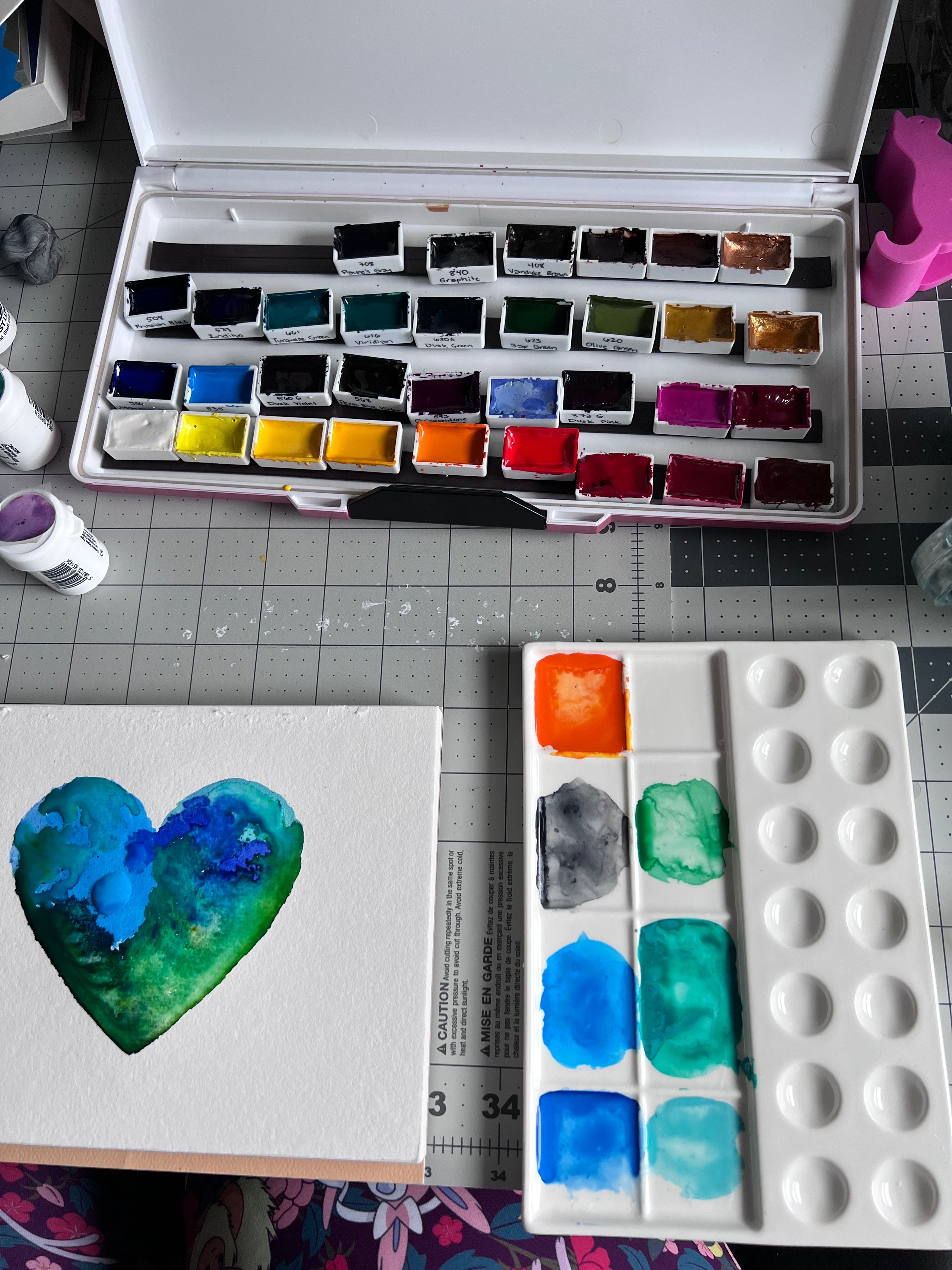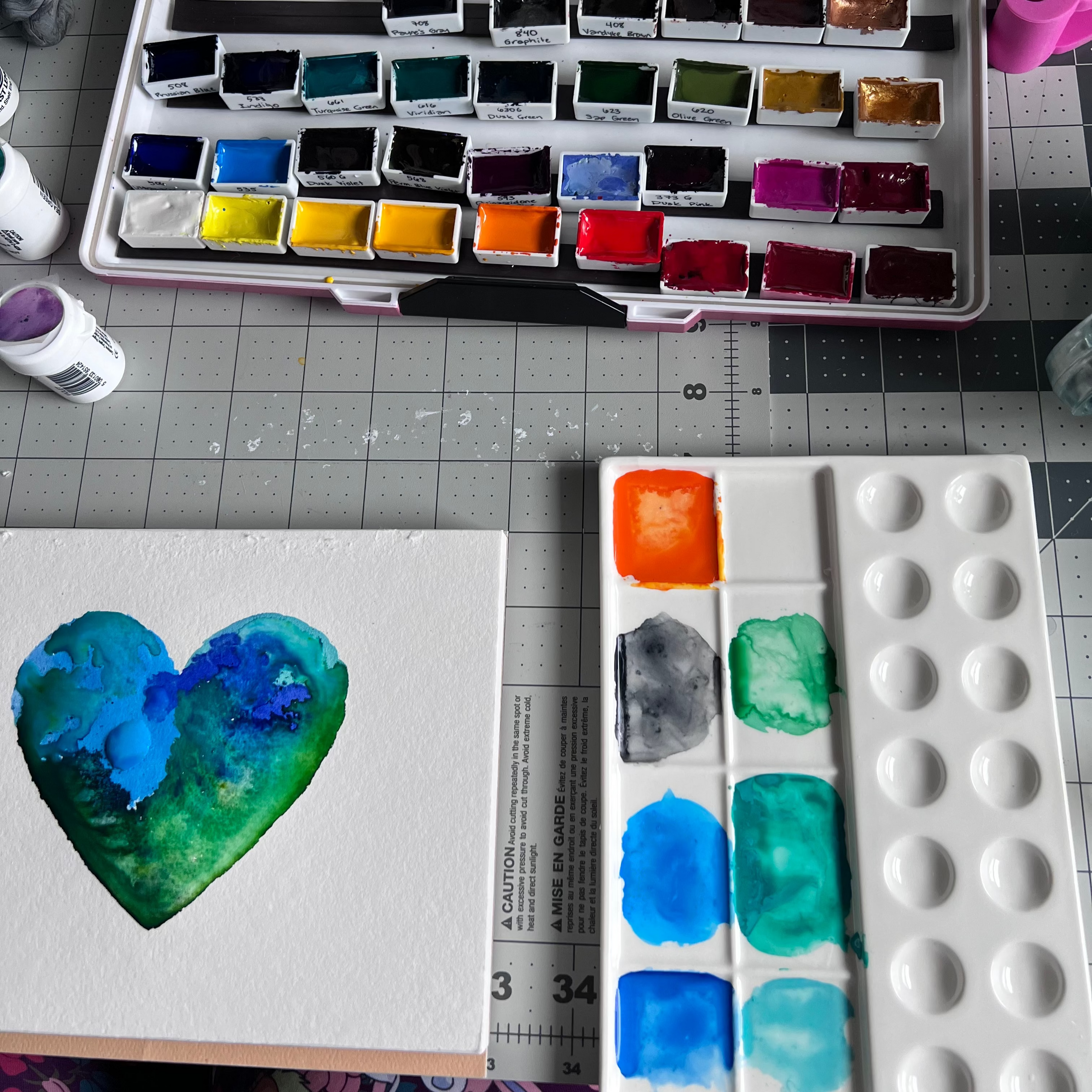 Watercolor hearts where the Kickstarter backer selected their color palette. Part of Kickstarter's #Make100 initiative.